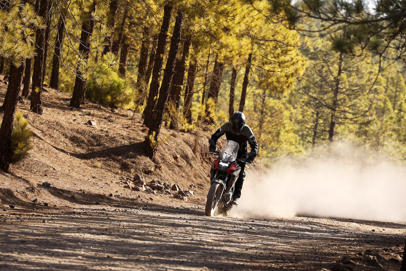 Nous avons pu tester toutes les trois variantes en Espagne, sur l’île de Ténériffe. D’abord la R et la F, puis la X sur un parcours de test incluant des pistes hors asphalte. Nous commençons notre compte-rendu par la X (lire notre essai de la version 2016), qui est passée par la case ‘‘facelift’’ et prend de la carrure cette année, avec des épaules plus trapues, des écopes de radiateurs plus agressives, une tête de fourche modernisée et une bulle rehaussée (réglable sur 2 positions avec outils seulement). Les ingénieurs ont également revu le guidon et affiné la selle pour une meilleure mobilité sur la moto.