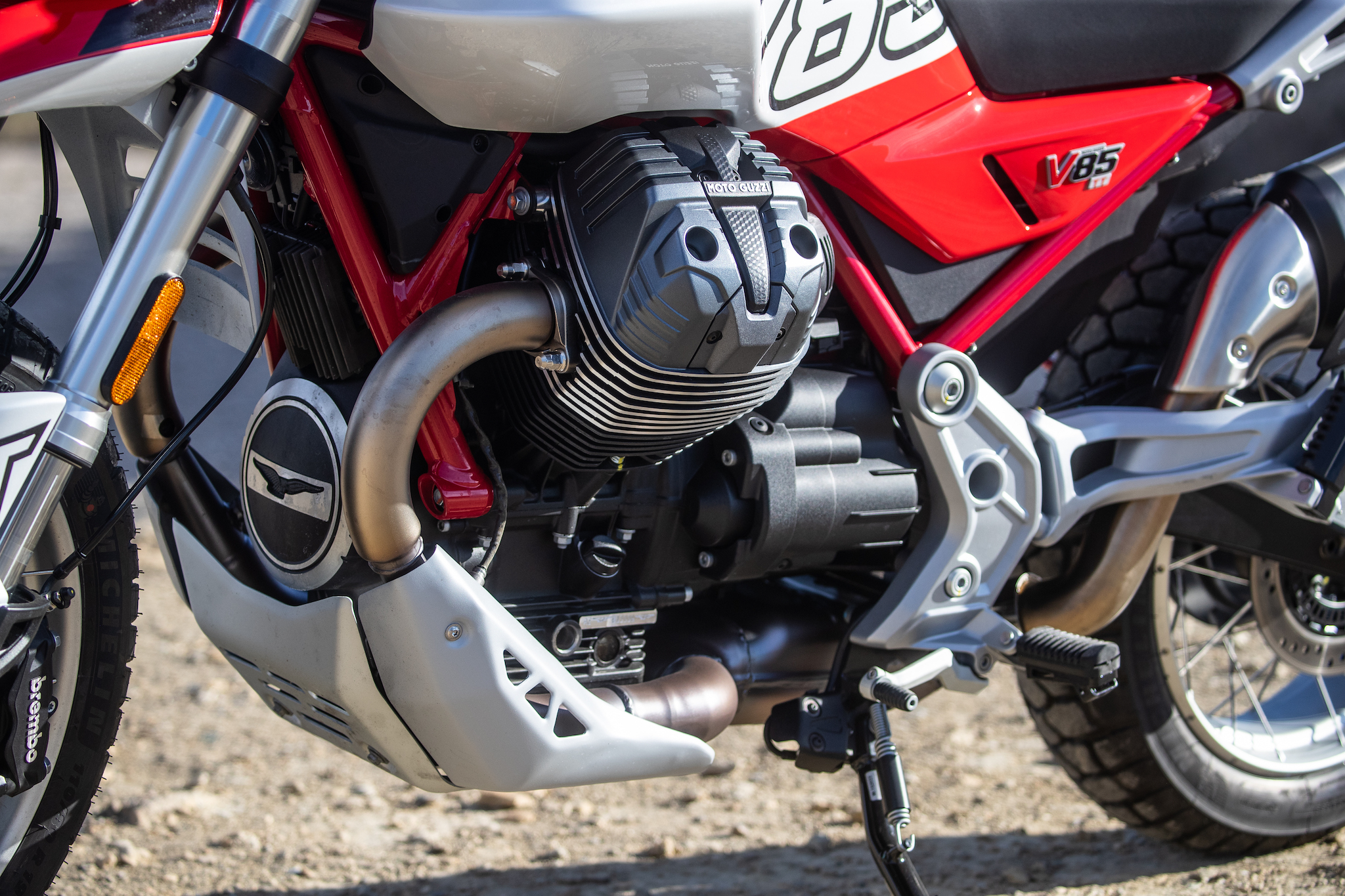 Le V2 transverse à 90 degrés de la V 85, toujours refroidi par air et huile, est à présent doté d’une distribution variable. Extérieurement, on ne remarque rien.