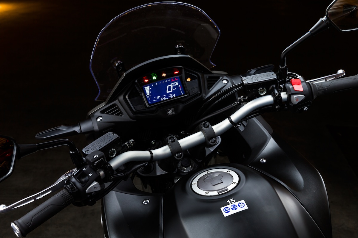 Pendant qu’on y est, on peut aussi régler la hauteur de selle, l’écartement des leviers de frein et d’embrayage, le positionnement du (petit) pare-brise et le degré d’intervention de l’antipatinage – via le gros bloc noir sur la partie gauche du guidon.