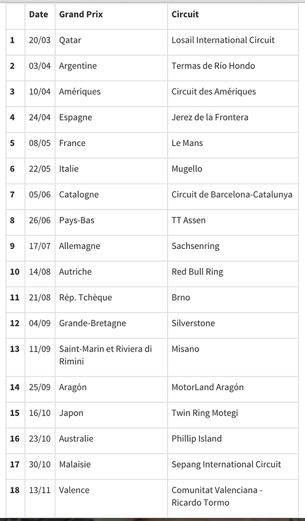 La FIM et Dorna ont le plaisir d’annoncer la version finale du calendrier du Championnat du Monde FIM MotoGP 2016.