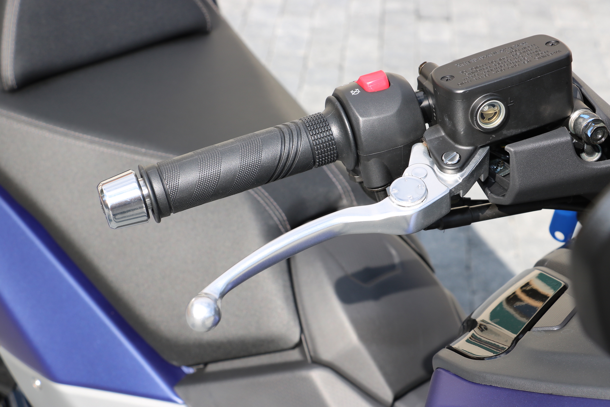 L’ergonomie est faite pour accueillir des pilotes de différentes tailles. On pose ainsi le devant des deux pieds à terre une fois en selle, et pas seulement les pointes. Le guidon est facile à prendre en main. Le poids (223 kg en ordre de marche) n’est pas un obstacle pour effectuer des manoeuvres, avec ou sans l’aide du moteur, et la machine braque bien, sans toutefois avoir l’agilité d’un petit scooter de type Vespa (par exemple).