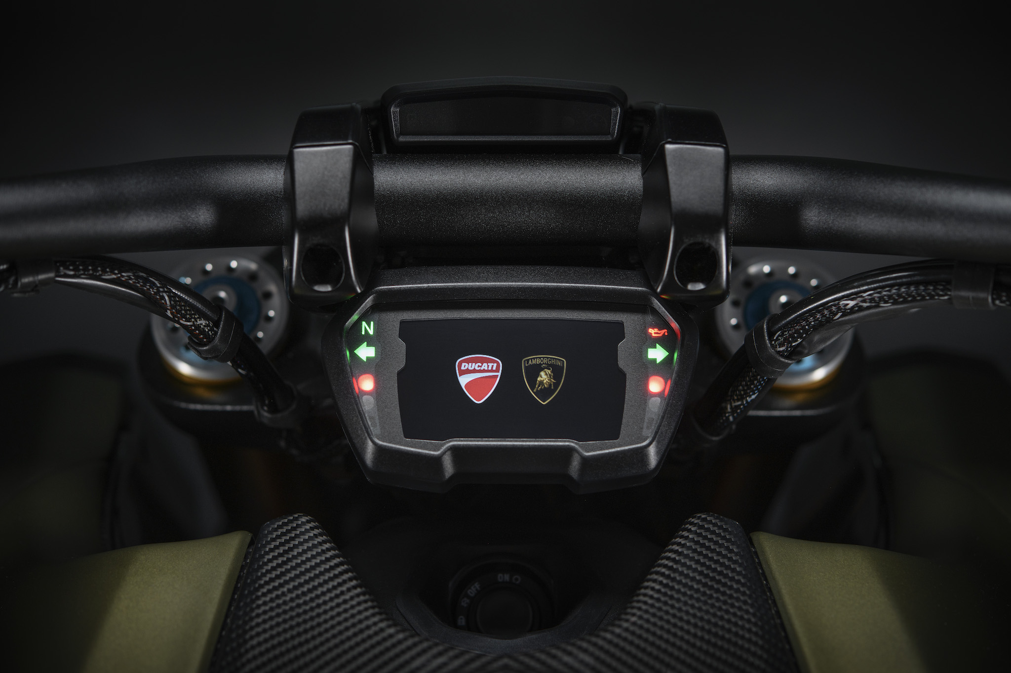 Fruit d’une collaboration inédite entre les centres de design des deux marques, ce modèle rend hommage à sa façon à la Lamborghini Siàn FKP 37, elle-même une interprétation moderne de la première Countach. Les vernis utilisés pour les coloris de la moto sont identiques à ceux de l’automobile. Et les traits distinctifs de la Siàn se retrouvent sous une autre forme sur le Power Cruiser sportif de Ducati.