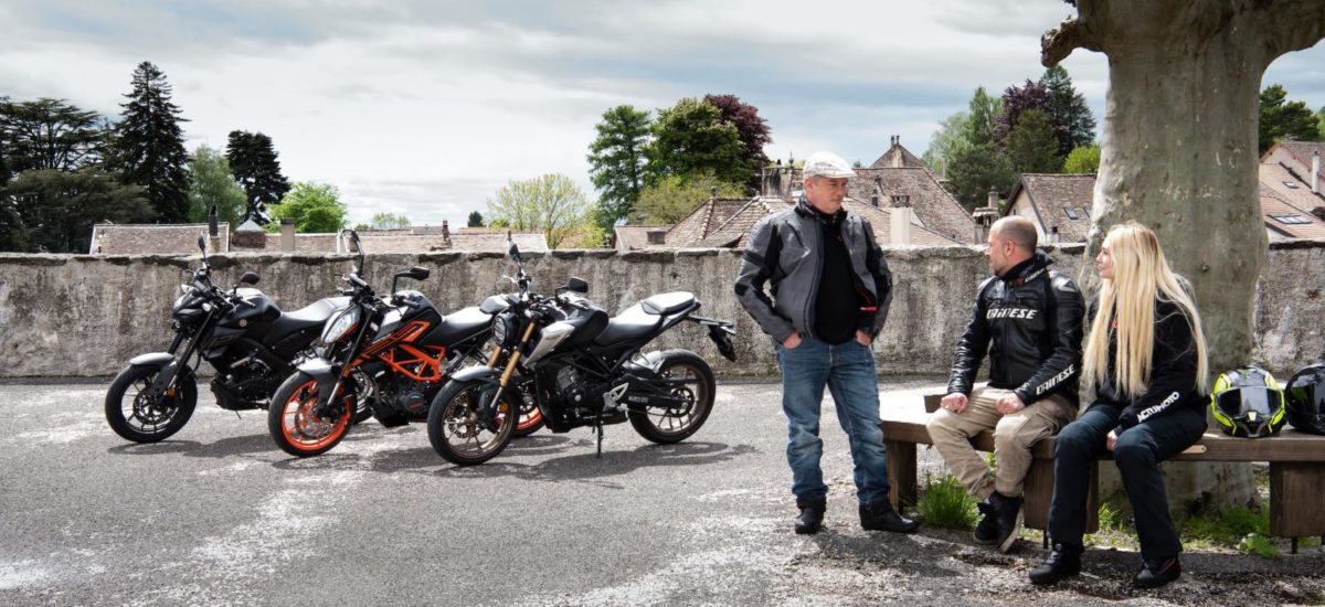 On commence à le savoir, en Suisse on peut depuis cette année conduire dès l’âge de seize ans une moto dont la puissance maximale ne dépasse pas 15 chevaux. Autrement dit une 125 cm3. Raison pour laquelle nous avons décidé d’organiser un essai 125 confrontant trois modèles phares de cette catégorie, et plutôt situés dans le haut du panier pour ce qui est de leur prix, de leur équipement de bord et de leur qualité de fabrication.