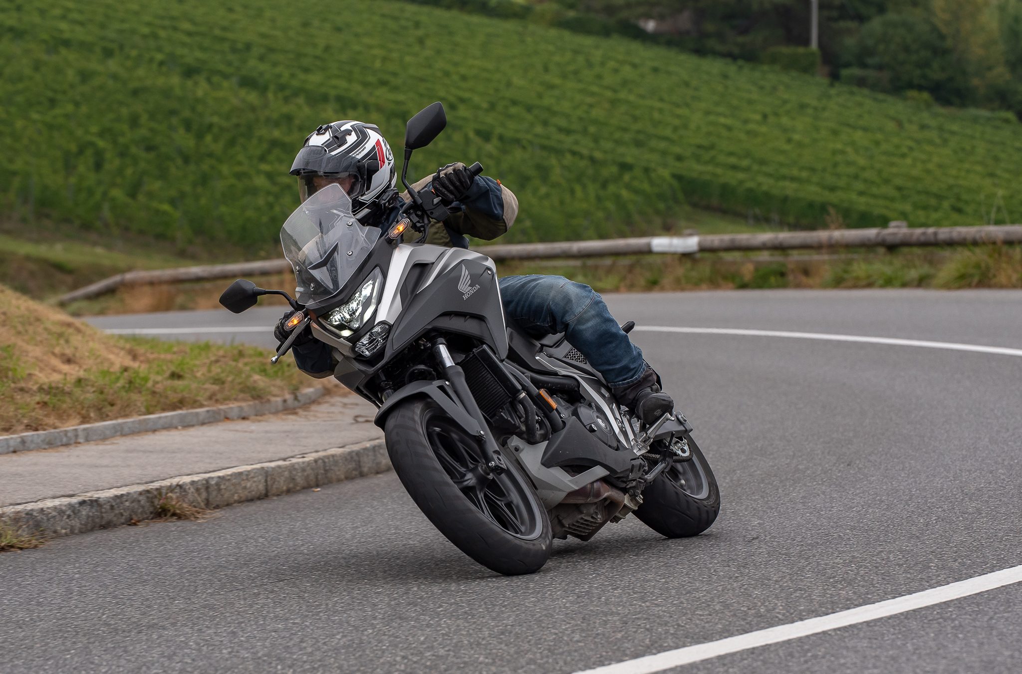 Elle demande un petit effort pour être jetée d’un côté à l’autre de la route. Et comme nous roulons avec deux collègues juchés sur une Ducati Mutistrada V4S, respectivement une BMW R 1250 RT, il faudra en comparaison à la Honda un peu de temps pour ré-accélérer avec la même vigueur, même dans le plus sportif des modes. On parle cependant, pour les deux autres motos, de machines de cylindrées bien supérieures et qui affichent des valeurs de puissance et de couple qui rendent presque ridicules les 58 chevaux et 69 Newton-mètres de la NC. Alors qu’en dehors de cette comparaison directe, le couple de la Honda est généreux pour sa cylindrée.