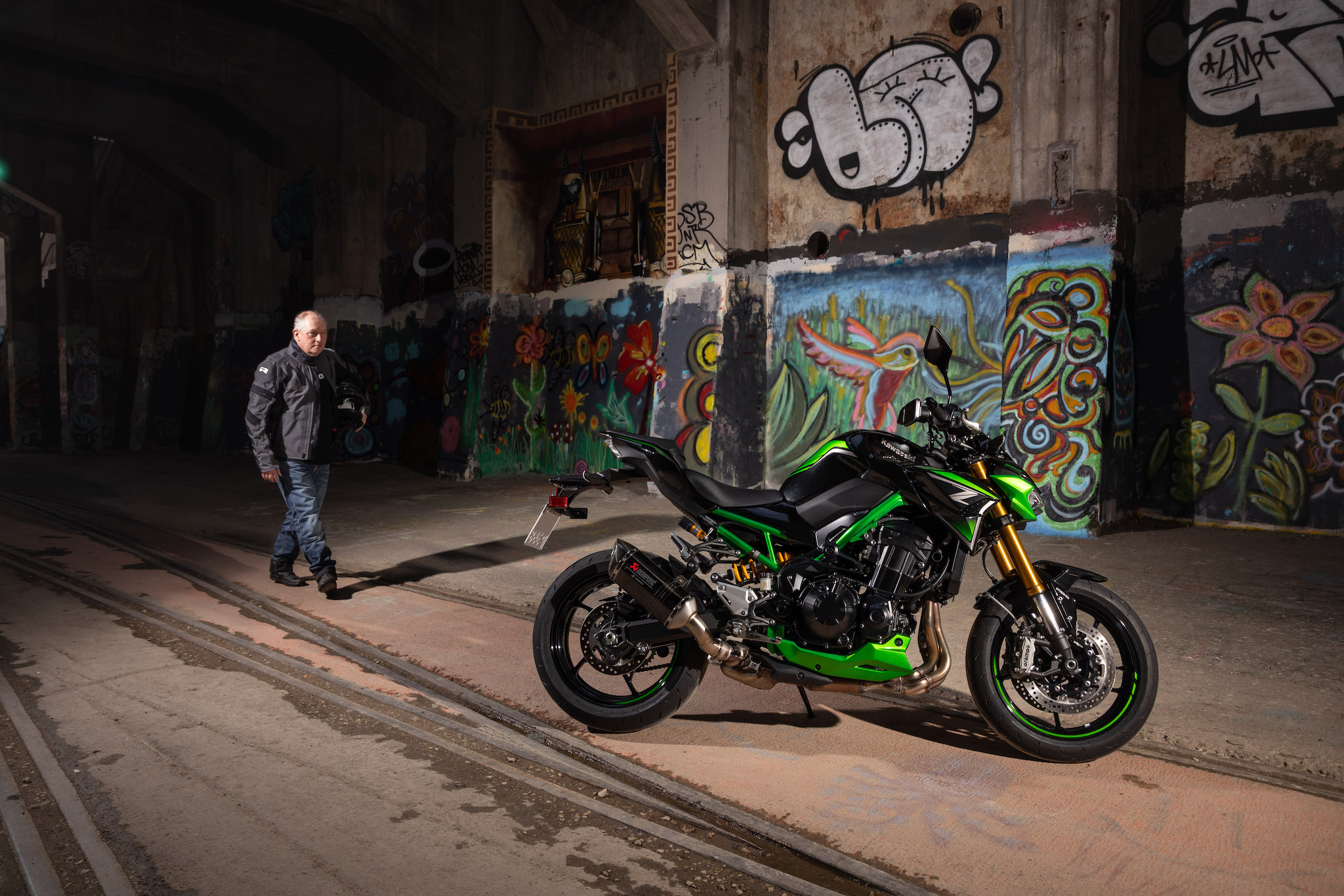 Kawasaki a pour habitude de proposer des motos qui offrent une bonne valeur pour un bon prix. Et c’est particulièrement vrai pour leur supernaked, la Z900, qui est un peu l’héritière, dans un design contemporain, de feu la célèbre Z1 Super Four, qui prit le monde par surprise en 1972 et a contribué à faire de la marque japonaise un des principaux constructeurs de motos au monde. Aujourd’hui, nous sommes là, chez Kawasaki Suisse dans le canton de Soleure, pour célèbrer les 50 années d’existence de la « ligné » Z, et pour tester une nouvelle variante de la Z900, la Z900 SE.