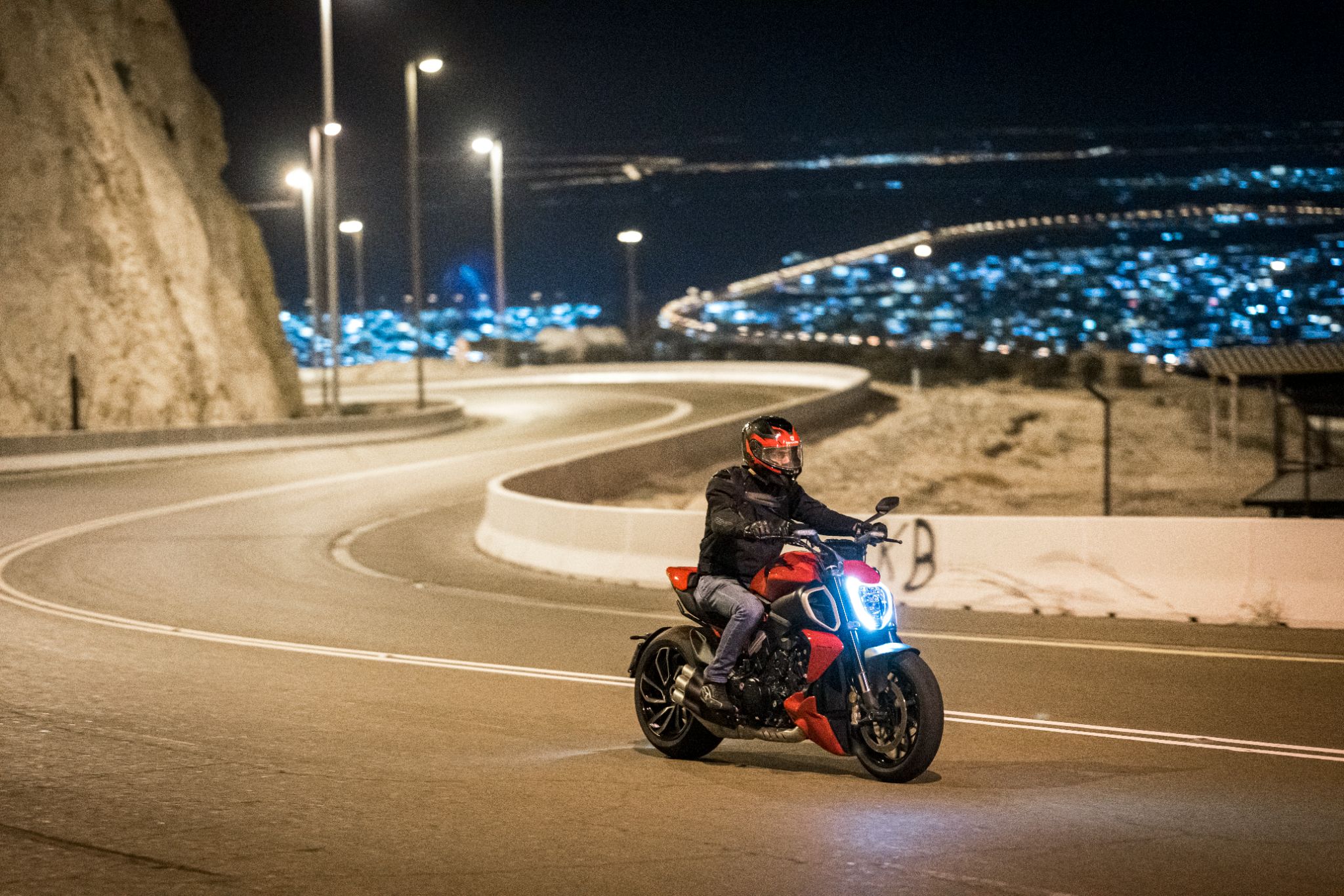 Tous les éclairages de la moto sont équipés de LED et les feux de position et de croisement s’enclenchent de manière autonome en fonction de la luminosité. D’ailleurs, l’éclairage est plutôt efficace de nuit. Le cône lumineux qui éclaire la route est large et la portée est correcte. Cependant, il a été difficile de juger de manière plus précise l’éclairage étant donné que les routes de Jebel Hafeet sont très bien éclairées de nuit.