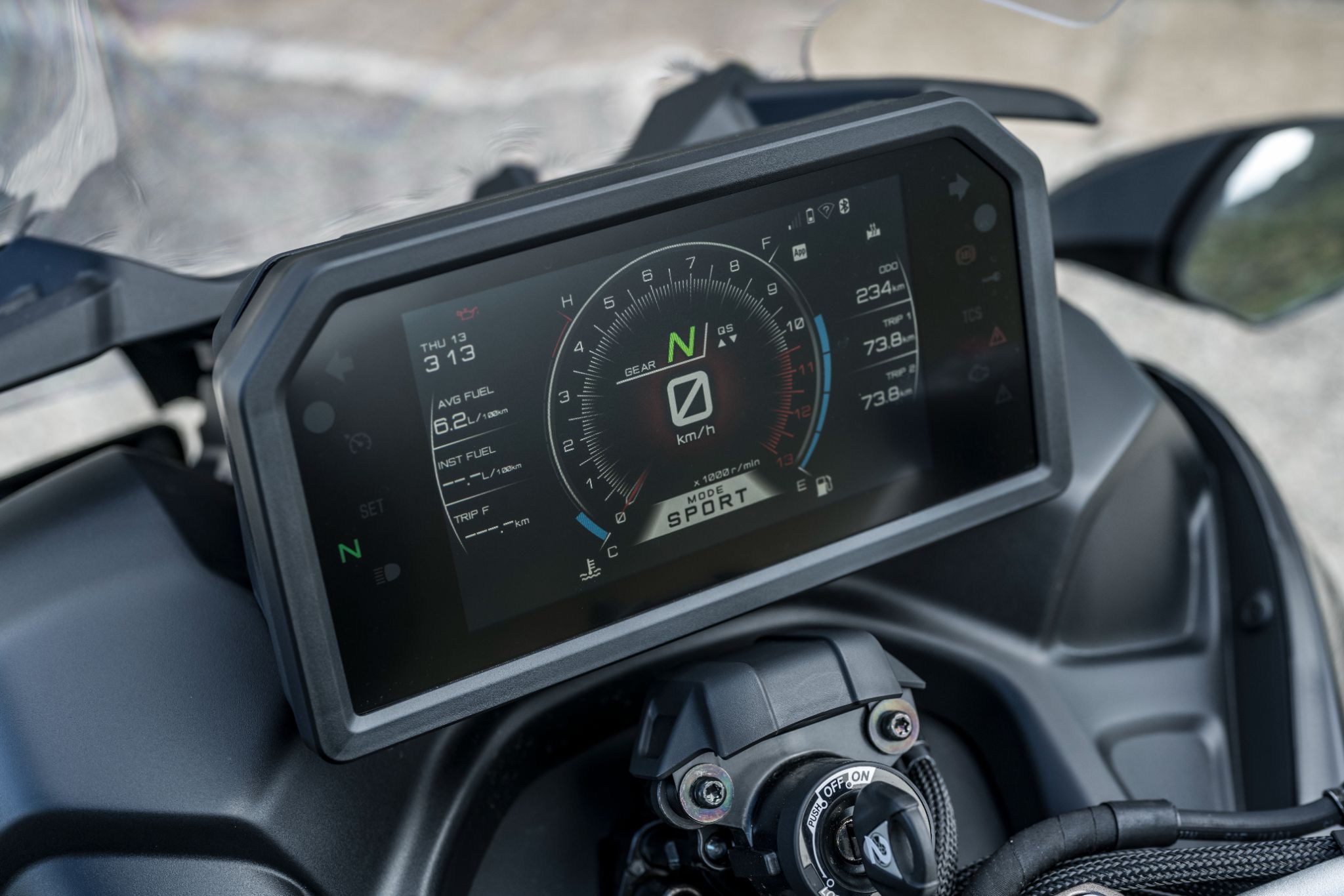 La moto arbore désormais un Shifter Up/Down, là où le modèle précédent en était dépourvu, ainsi qu’un régulateur de vitesse, qui fonctionne à condition d’être au minimum à 50 km/h avec au moins le 4ème rapport engagé. Une bulle réglable manuellement à l’aide d’une pince fait aussi partie des nouveautés et protège plutôt bien du vent.