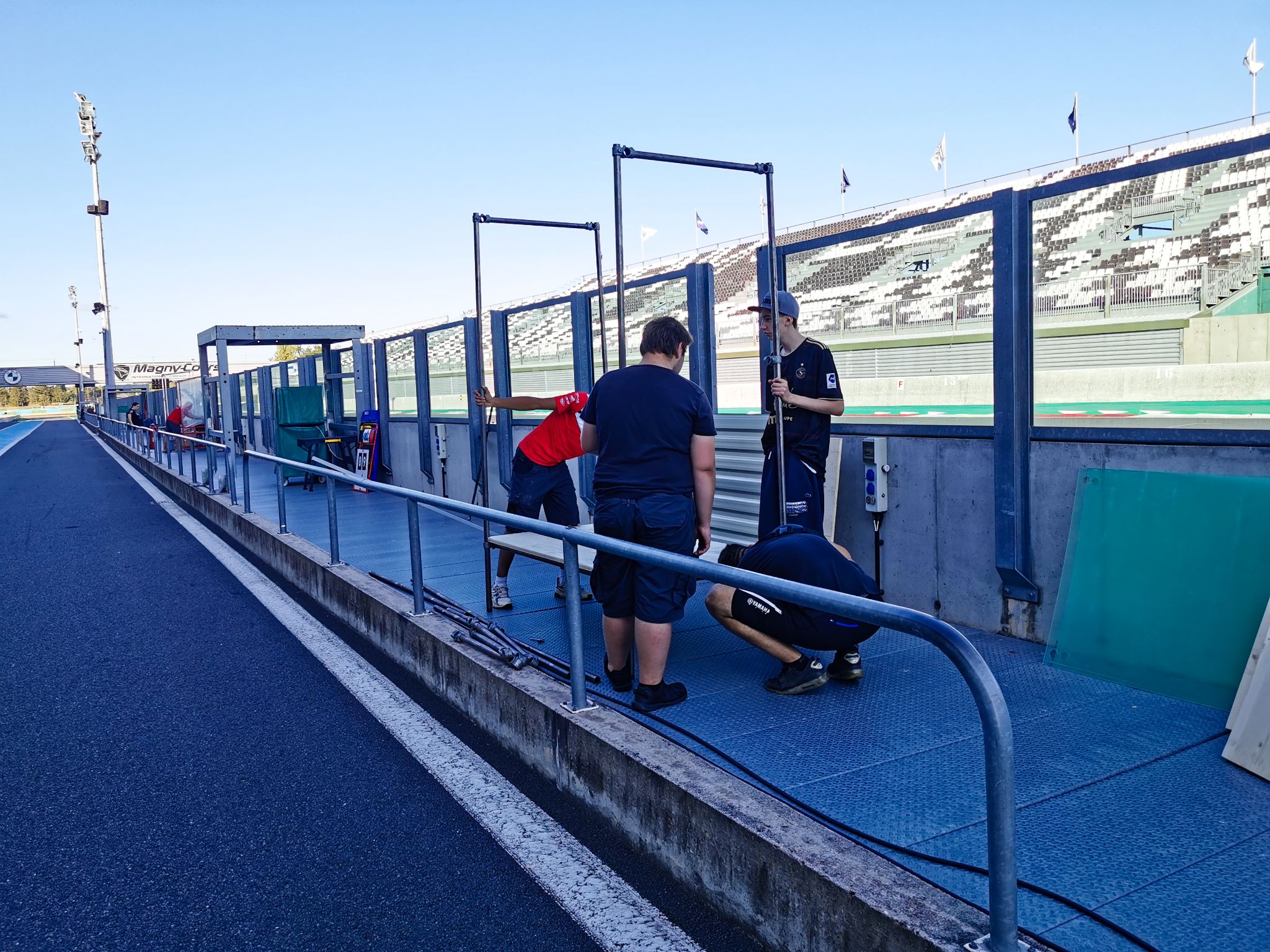 Tout le monde s’est retrouvé dans le box en milieu de matinée pour débuter les essais libres. Le team a pris la décision de monter les pneus pluie.