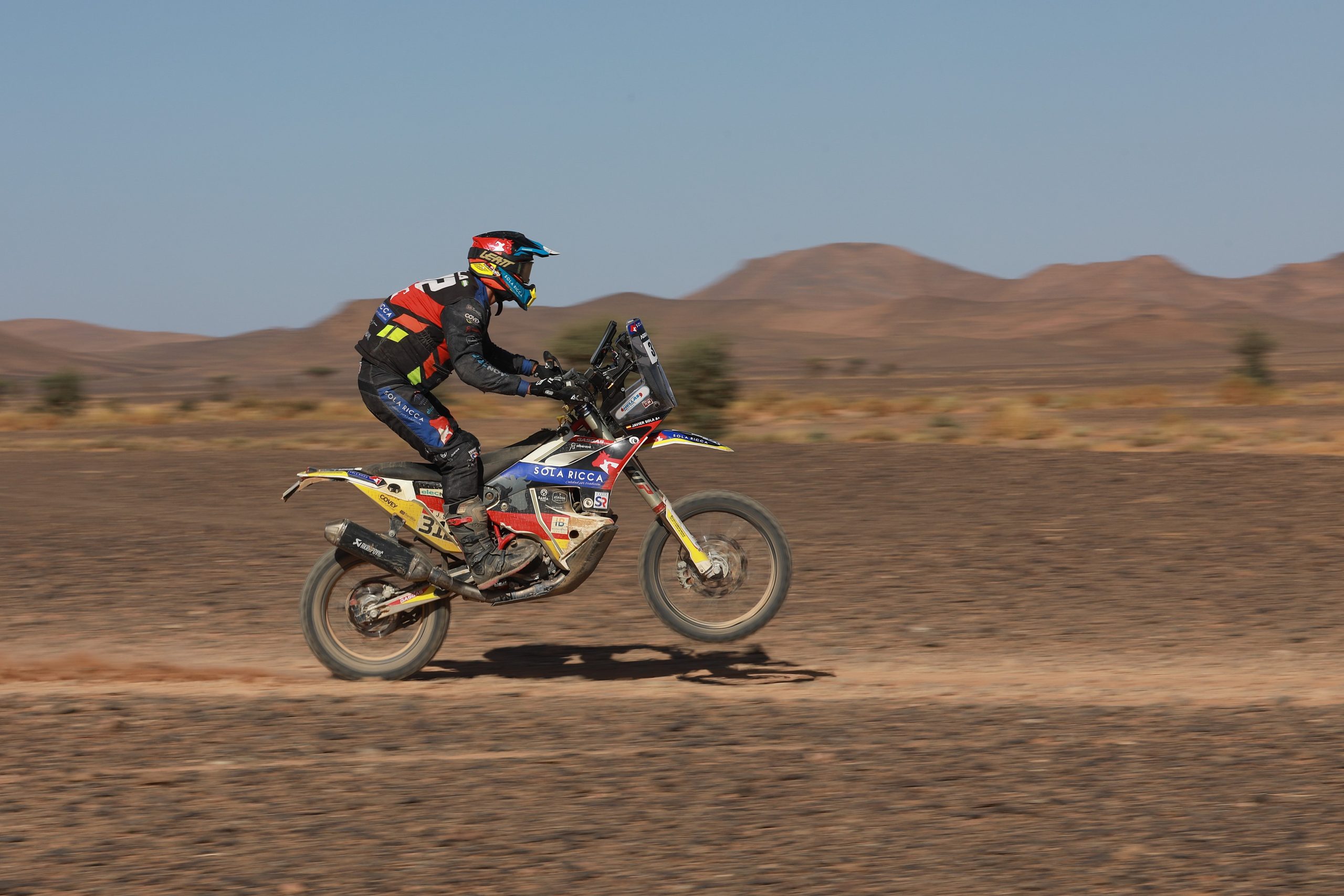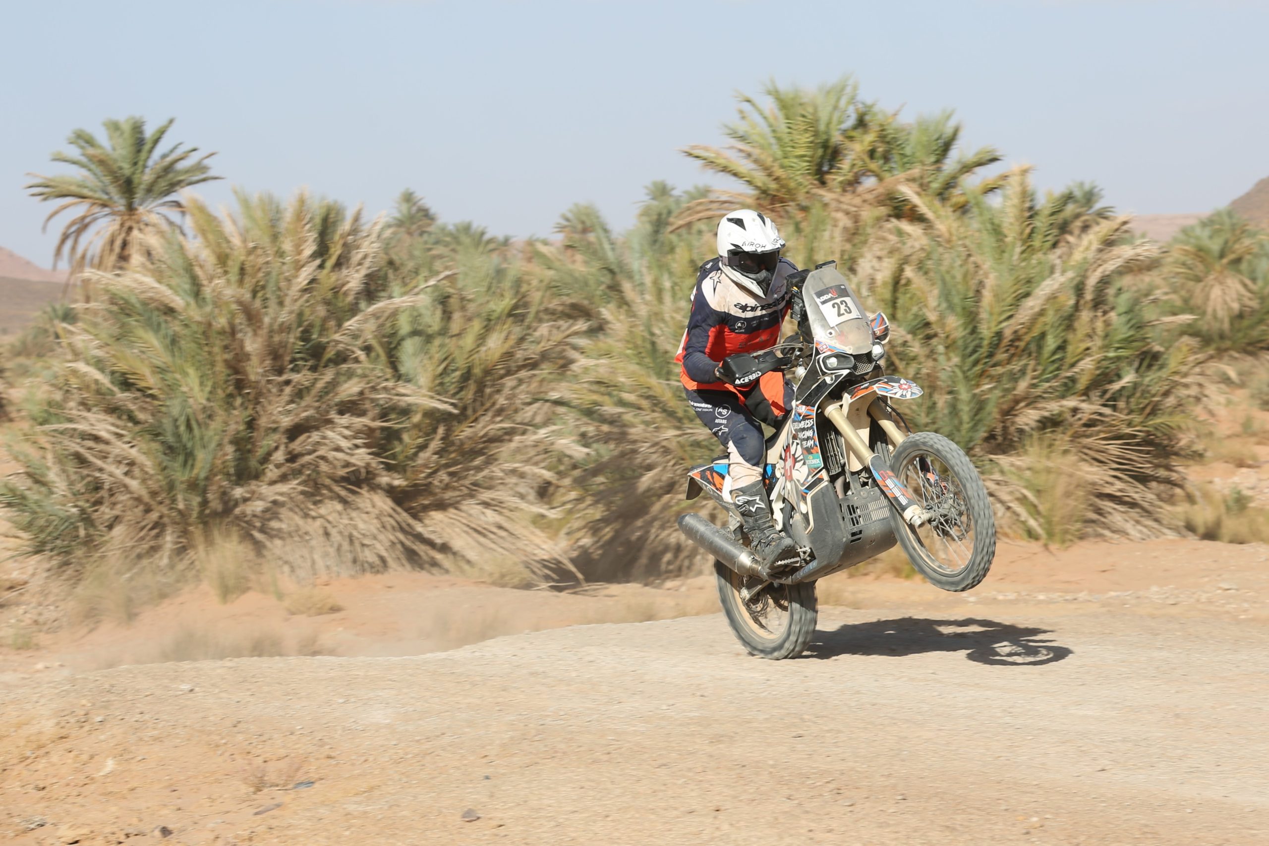 Ce mercredi, ce sera une spéciale qui mêle longues lignes droites et passages trialisants, notamment dans les oasis. Et la grosse nouvelle du jour est l’absence d’Antonio Maio (1, Yamaha 700), à la suite d’un avis médical défavorable, conséquence de sa chute du jour d’avant.