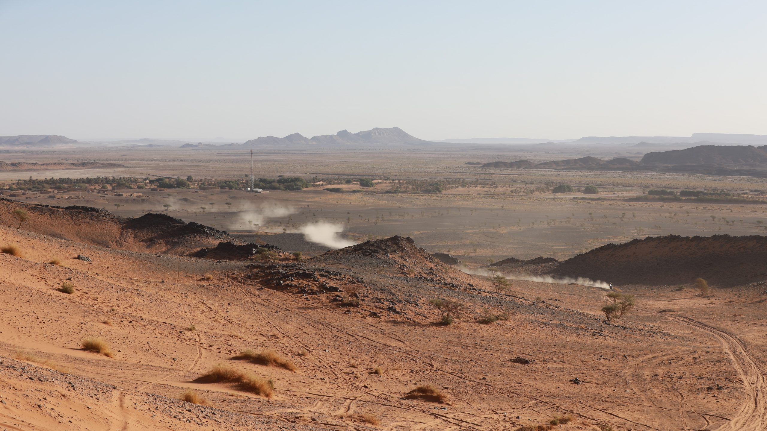 Le rallye Addax, tout comme le Fenek, a cette particularité d’irradier autour de Merzouga: tous les matins les concurrents partent du centre névralgique du rallye (le Palace Nasser) et rejoignent le départ de la spéciale du jour par un parcours de liaison plus ou moins long selon les jours, selon le principe du « on part du point A et on revient au point A, tous les jours« .